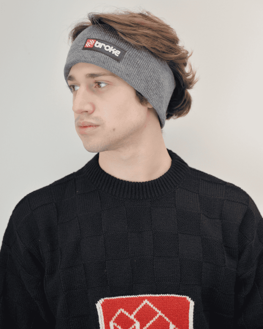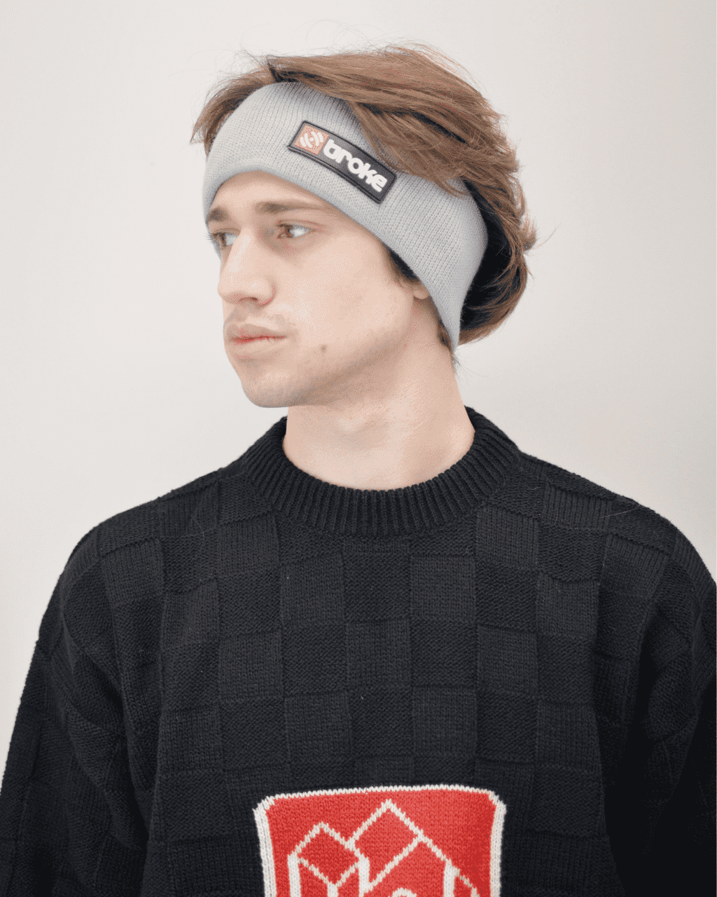Winterstirnband, 100 % in Italien aus feinsten italienischen Stoffen hergestellt. Streifendesign erhältlich in Grau, Hellgrau und Schwarz.