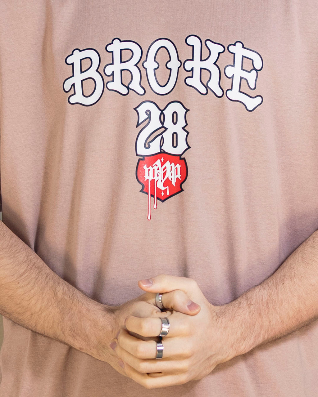 Logo-Print auf dem Ärmel sorgt für Wiedererkennungswert, ohne aufdringlich zu wirken. Einprägsamer Frontprint . Kultiges rotes „Broke“-Label an der Seite – denn Stil liegt im Detail.