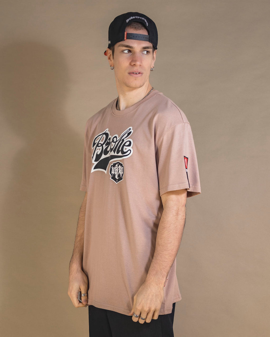 Klassischer Baseball-Stil, neu interpretiert mit Broke-DNA. Dieses Oversize-T-Shirt vereint Street-Ästhetik mit hochwertigen Details: Hergestellt aus 100 % schwerer Baumwolle (200 g/m²) garantiert es eine strukturierte und bequeme Passform. Die Baseball-inspirierte Grafik dominiert das Design, während das auf den Ärmel gedruckte Logo für eine einzigartige Note sorgt.
